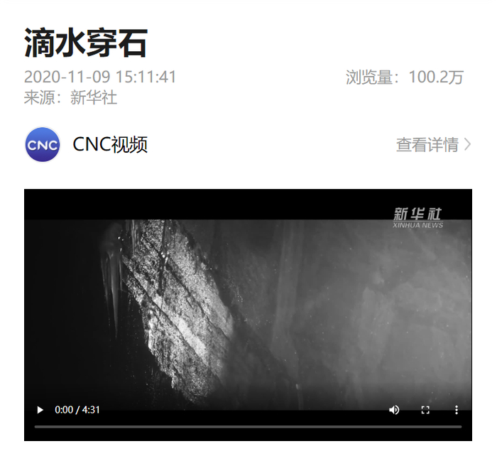 原标题:视频 | 滴水穿石