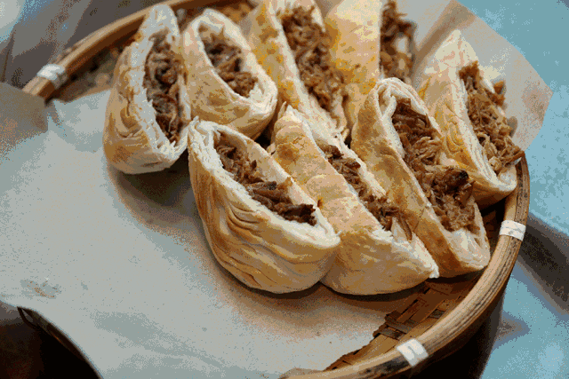西安人的冬天怎么能少了一碗羊肉泡馍,羊肉通常与葱、姜、花椒、八角、茴香、肉桂和其他一些配料一起烹制。要像当地人一样吃羊肉泡馍,你应该把馍掰成碎片,然后把馍浸泡在羊肉汤里。然后与羊肉汤、腌蒜瓣、卷心菜、料酒、粉丝等一起食用。