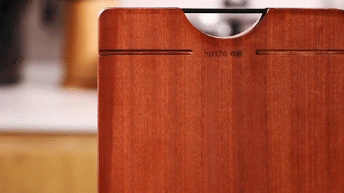 就拿这款乌檀木实木砧板来说,它的表面就细心布置了排水槽,人性化的解决掉切果蔬汁水流一滩的问题。