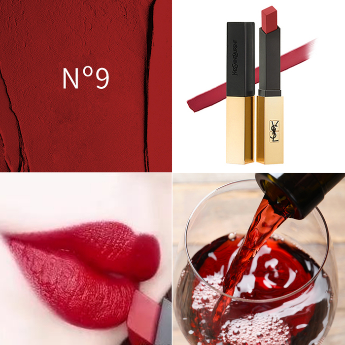 Nº9属于浓郁的酱红色,比普通酒红多了一丝粽调,带着铁锈红质感,是优雅的复古风。