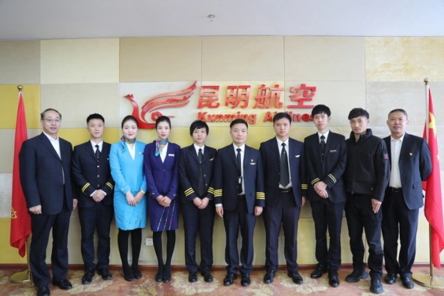 昆明航空党委书记、董事长轩余恩,总飞行师周勇在八楼会议室接见机组(左二起分别是:郭鑫洋、连文君、王成成、杨洋、徐田野、秦攀、原帅、张庆华) 昆明航空 图