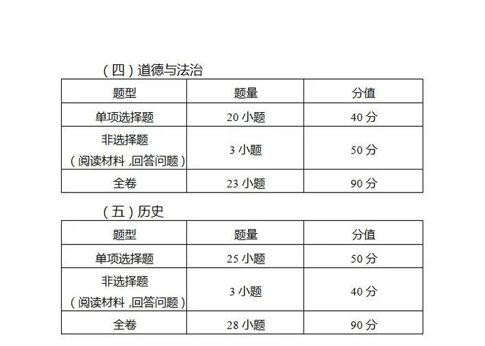 道德与法治、历史学科的题型均为单项选择题和非选择题,题量与考试时长相适应,其中非选择题均为阅读材料、回答问题的命题方式。