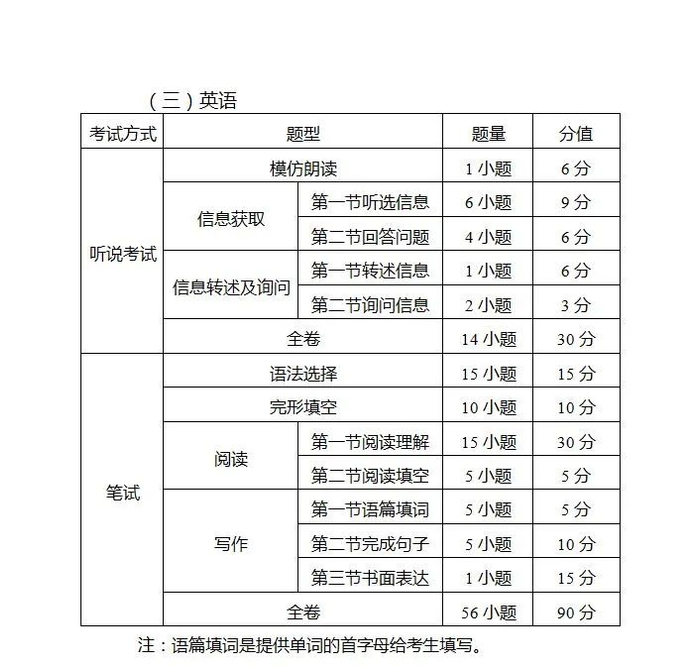 英语学科听说考试部分题型题量保持不变,笔试部分有所调整,写作板块的单词拼写改为语篇填词,部分题型的题量随着考试时长缩短略有减少。