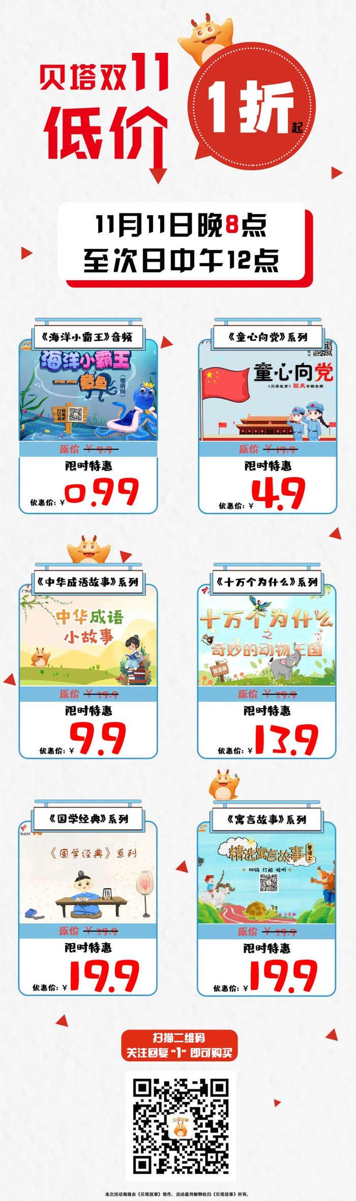 而且好消息是,趁双十一庆,贝塔故事精品音频最低1折起!