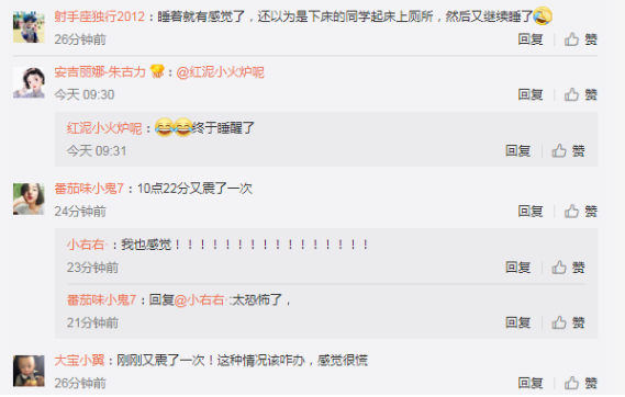 还有网友说,正睡着突然感到摇晃,还以为是下床的同学起床上厕所呢。
