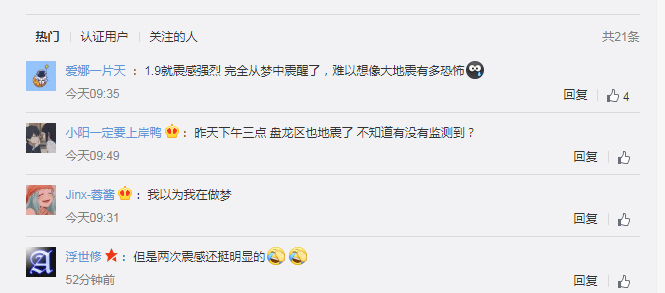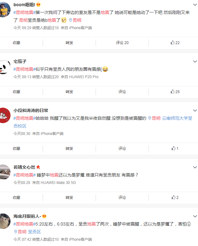 不少昆明网友都表示:震感挺明显的,被从梦中震醒了两次!