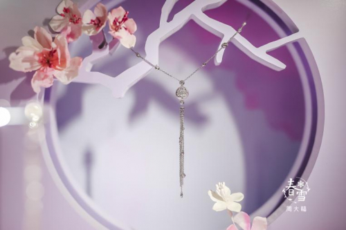 2020年10月全新推出的春雪系列,采用了T MARK钻石,并在高雅的昆曲艺术中汲取灵感,打造出独一无二的印记和意境,配合独家内嵌车花工艺,让钻石更加闪亮, 映射勇敢自信的现代女性,无惧世俗的眼光与争议,坚定追求自己所爱所想;亦如秉承真我、大胆独立的林允,柔而不弱,傲而不骄,如春雪一般,自有腔调。10月24日,春雪系列新品发布会在深圳举行,林允惊喜现身发布会现场,与周大福高层一同揭晓春雪系列全新珠宝,感受每一件臻品的艺术造诣与精湛工艺。