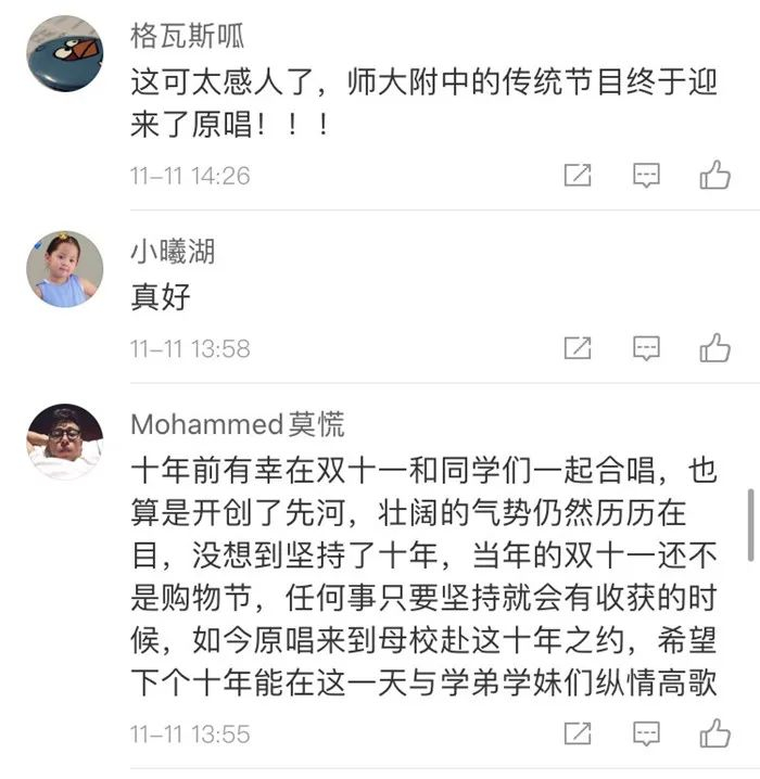 “双十一”这天合唱《单身情歌》已是师大附中多年的传统,这一唱就是10年,今年是第十个年头。一起来看看这些年的回忆。