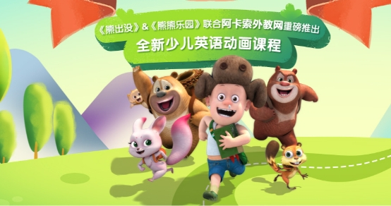熊出没&熊熊乐园,阿卡索与《熊出没》IP合作的系列课程。这套课程结合了寓教于乐的官方英语动画片,给小学阶段的孩子提供了生动、有趣的英语入门知识并传达了积极向上的价值观。打破孩子学习英语一般只能通过“死记硬背”的传统方式,阿卡索《熊出没》系列的英语课程将单词与动画片剧情结合,在情景中加强孩子理解和记忆,让孩子告别枯燥乏味的传统模式,让孩子在轻松有趣的学习氛围中,更好地学习英语表达。