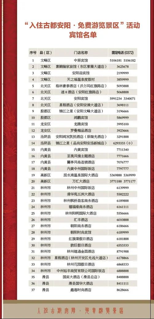 “入住古都安阳•免费游览景区”活动是在“迎客入安”旅游优惠政策的基础上,推出的又一优惠新政。活动主要内容是,即日起至2021年3月31日为第一阶段,凡入住活动名录酒店的旅客,都可以凭身份证和优惠券免费游览安阳所有参与此次活动的景区。