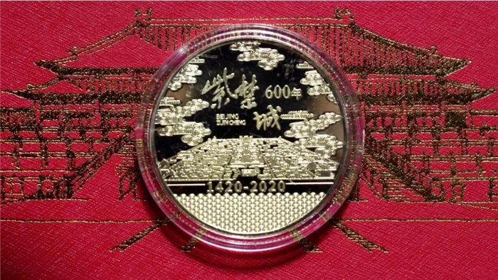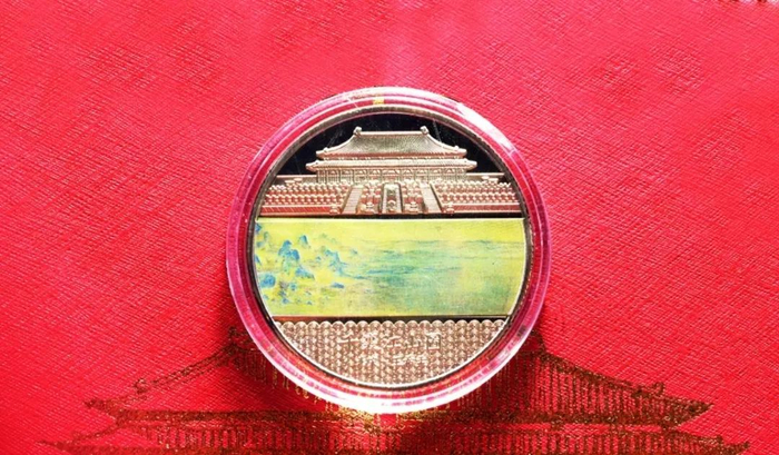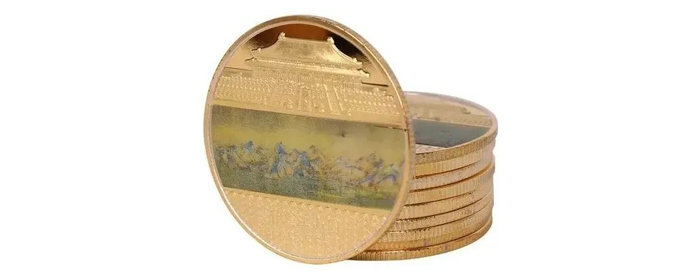 币身上使用了专门的浮雕工艺,紫禁城600周年字样、祥云、宫殿、水波纹均栩栩如生!背面的《千里江山图》局部图也是青翠欲滴,很好地复刻了原画的精髓!