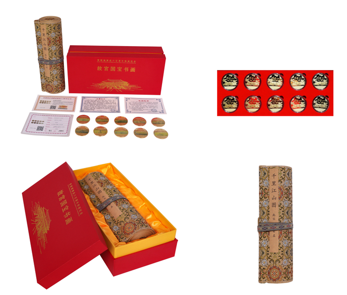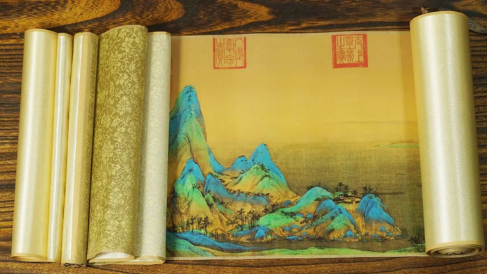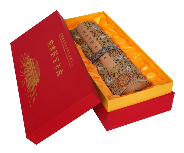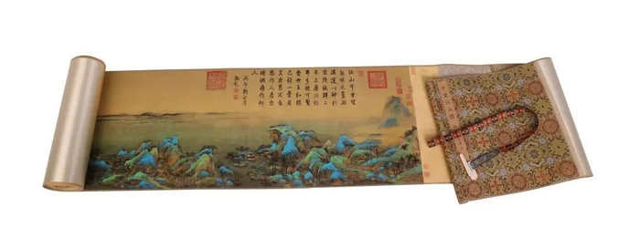 为此,北京市印刷技术研究所在紫禁城建成600周年之际,用大家可以接受的成本把《千里江山图》复刻还原出来,推出这套《千里江山图》高清复刻版卷轴。
