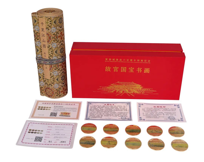 规格:7米长卷《千里江山图》+直径40毫米含金纪念章