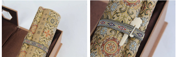 为了大程度还原原作,复刻专家组采用珍贵丝绢材质,丝滑质厚,多次展开卷起也不起褶皱。