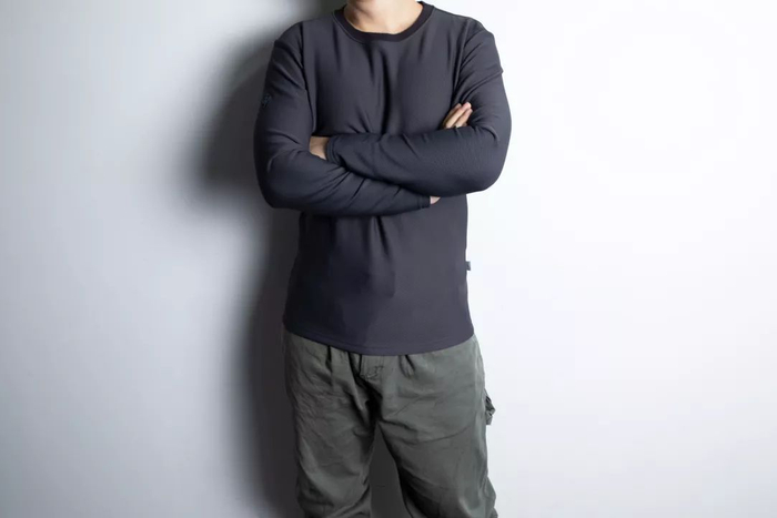 用蓄能T恤的L码与普通卫衣的L码做了比较,马上就能直观感受到,两件衣服对于体型的修饰度。