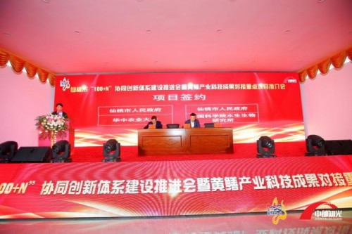 11月6日,在仙桃市张沟镇先锋村举行“100+N”协同创新体系建设推进会暨黄鳝产业高质量发展科技创新成果对接重点项目推介会。