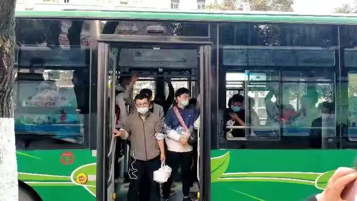 下午4时10分,记者在78路公交车上看到,公交车进入和平广场南站,一位老年乘客上车没有佩戴口罩,公交车驾驶员及时提醒了该乘客,该乘客立即从口袋掏出口罩戴上。