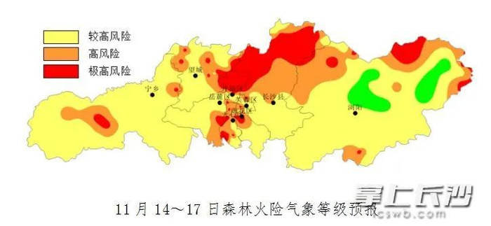 森林火险气象等级正逐渐上升,预计14日至17日,城区北部、南部,长沙县北部,浏阳东北部森林火险气象等级4级至5级。