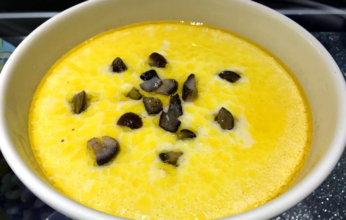 刚出锅的鸡蛋羹,带着微微颤动的嫩滑,散发着徐徐热气,加上一点点调料,香气四溢,这就是家的味道!再加上营养Q弹的海参,简直是人间美味!