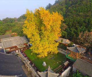 西安一千年古银杏树进入最佳观赏期