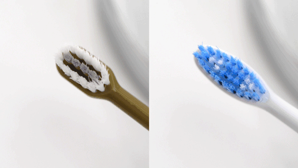 这种W型刷毛的剪裁,全方位贴合牙齿,就算脏东西藏得再深,也能被轻松刷出。
