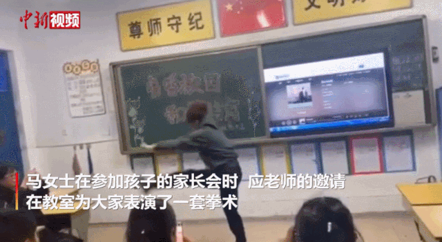 原标题:别人家的父母!家长会上,妈妈表演360°回旋踢