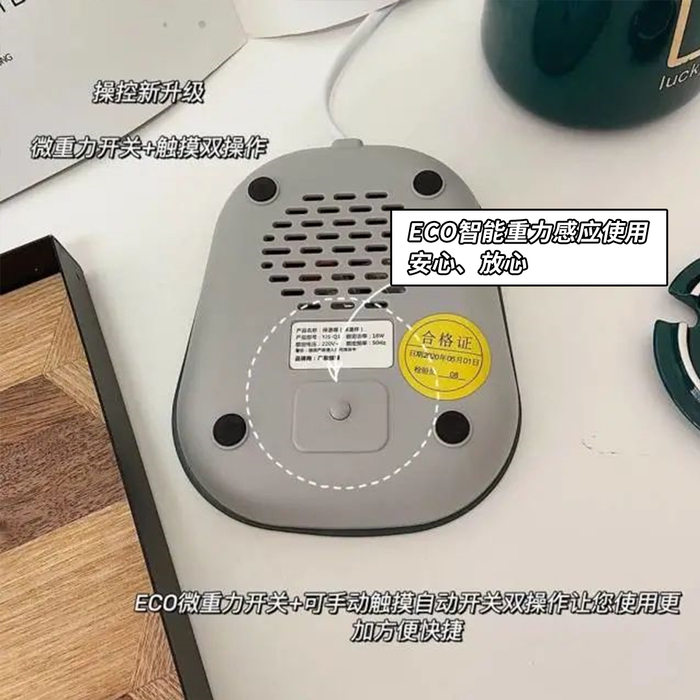 放置杯子会自动加热,拿起杯子就会自动弹回断电,操作简单方便,还有耐磨抗冲击强,防水,易清洁等优点~