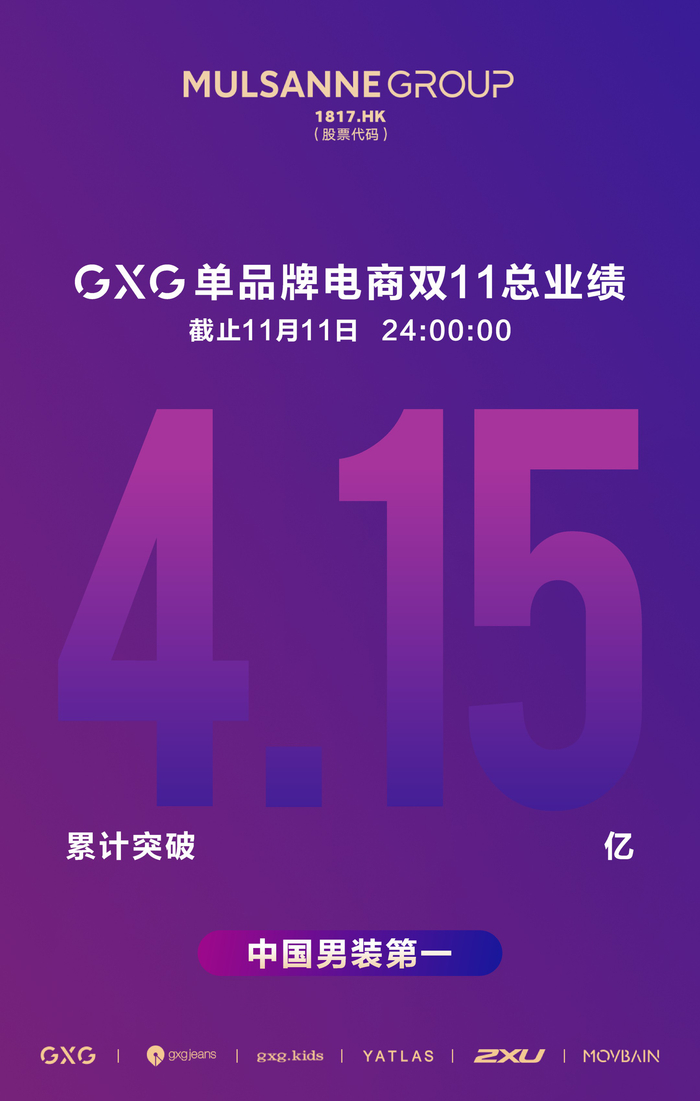 延续往年在电商的强劲表现,今年天猫双11,GXG单品牌再次问鼎国内男装,双11累计销售业绩破4.15亿。其母公司慕尚集团全渠道双11总业绩突破7.37亿元,其中电商渠道销售总业绩更是在8小时45分破去年全天记录。