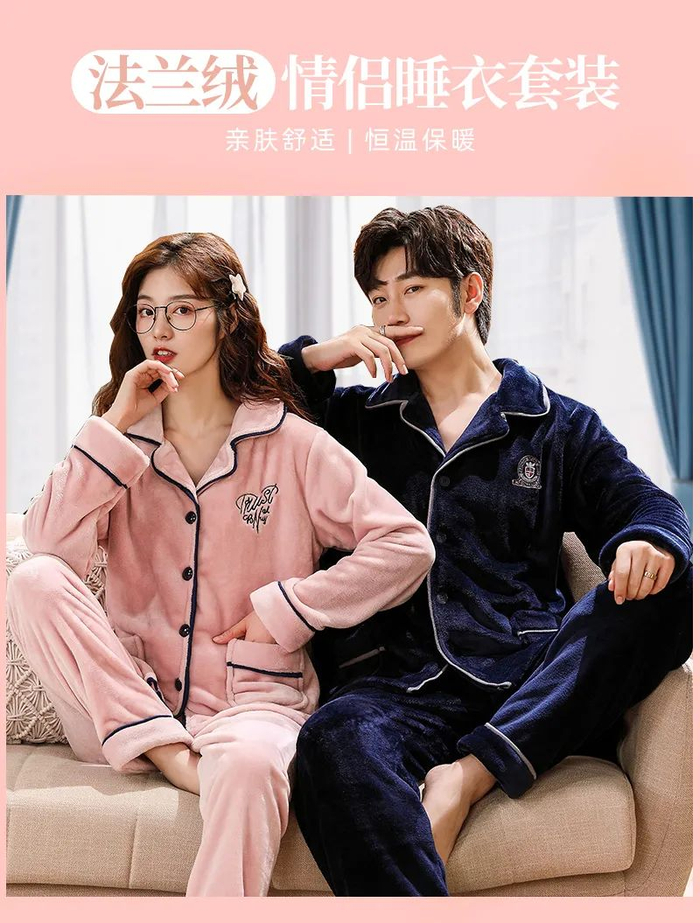 法兰绒情侣暖暖睡衣套装