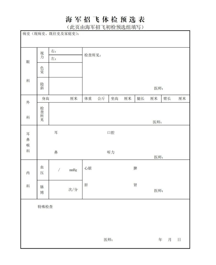 3.报考态度:本人参加海军招飞意愿强烈,自愿报考且态度坚定,家长(监护人)支持。