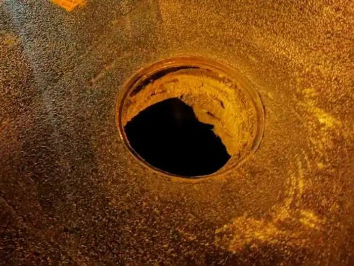这个力量太可怕了,这个井盖被弹起时,万一正好有一辆车经过,后果不堪设想。”