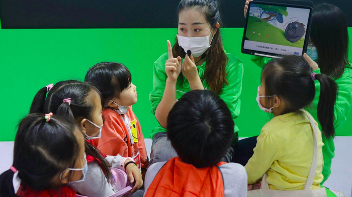 斑马AI课在童书展现场播放的斑马AI课3D动画儿歌,吸引了众多孩子们驻足观看,成为了展馆里一抹亮眼的风景。3D动画儿歌由斑马AI课精心打造,全网上线16首,播放量超过7000万,已经成为2-8岁儿童在线教育领域家长信赖的爆款。