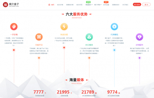 目前,媒介盒子现有的软文发布平台的产品对比同类竞品优势明显:其一方便快捷,用户可以完全自助化的一键式提交稿件到媒体编辑方,整个过程不要一分钟,对接非常方便;其二媒体丰富价格优惠,平台拥有上万家优质媒体资源,均从源头采购,行业一手价,为代理商客户群体提供了优质的利润空间,为整个平台的良性发展提供了稳定的发展空间;