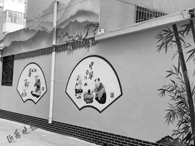 铁匠巷社区主任潘浩荷说,9面围墙提档升级成了3D彩绘文化墙,共计画了有16幅画,主题有中国梦、尊老敬老、讲文明讲卫生,彩绘文化墙的画风是3D油画风格,也就是虚实结合,看上去很立体。
