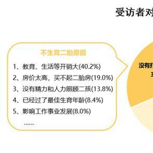 什么在左右育龄夫妇“二孩”生育意愿呢?调查显示,一边是现实压力,一边是情感需求。在“不想生二孩原因”调查中,40.2%的受访者认为“教育、生活等开销大,负担过重”是最主要原因,“房价太贵,生了二孩买不起大房子”属于次之原因,占比19.0%。而想生二孩的原因中,“希望一孩有个伴”是最主要原因,占比35.5%。