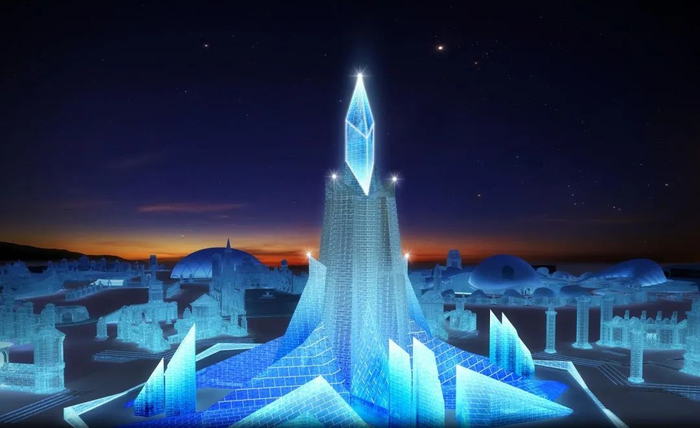 据了解,本届哈尔滨冰雪大世界旨在传递“一带一路”的文化内涵,集合并展示了波兰、捷克、斯洛伐克、匈牙利、斯洛文尼亚等十七国的人文风情及哈尔滨城市特色。40米高的主塔“冰城之心”景观通过灯光明暗变化,形成主塔顶部水晶体悬浮的视觉效果,从远处看去仿佛一颗巨大的水晶悬浮在哈尔滨冰雪大世界的上空。