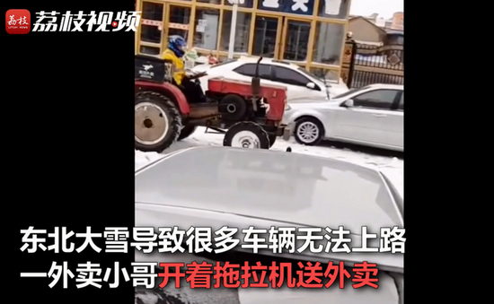 (原标题:东北大雪封路小哥开拖拉机送外卖 网友:辛苦了)