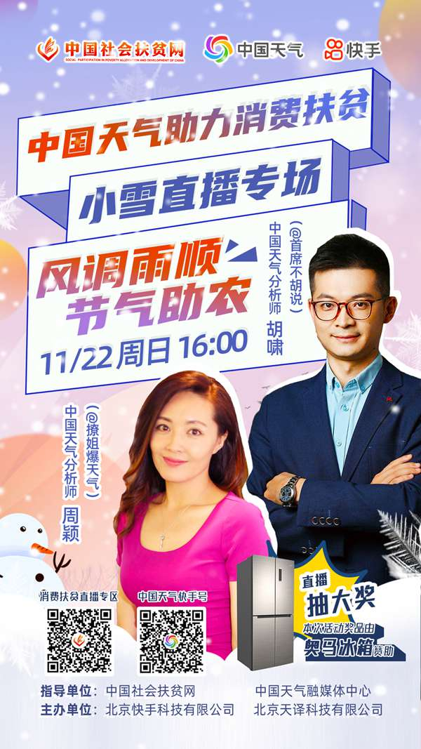 一起锁定11月22日(本周日)16:00,快手中国天气和消费扶贫专区直播间吧!
