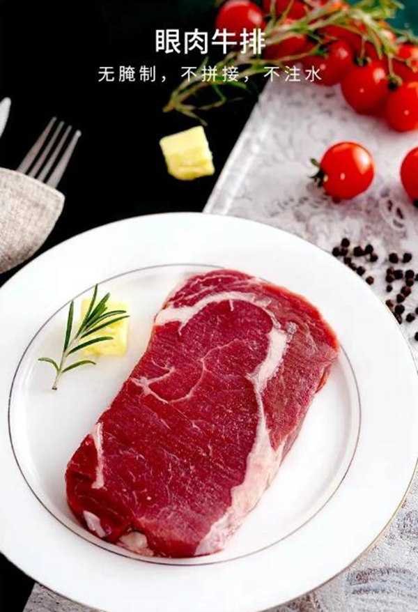 内蒙古的冬天非常寒冷,为了更好地沉积脂肪,这些牛冬天都是喝温水的,牛棚中还有相应的保温通风设施,保证牛棚冬暖夏凉。这款来自内蒙古科尔沁大草原的原切牛排,选的都是眼肉、西冷,一头500公斤的牛,仅能出16公斤的眼肉和12公斤的西冷。没有任何添加,肥瘦比例刚刚好,自然的纹路,原切的不规则形状随时向你证明着它的天然和原汁原味。