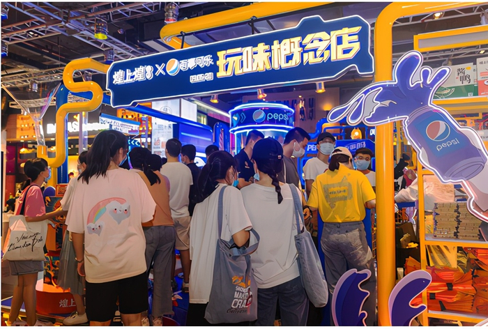 同时,煌上煌与百事可乐联名打造“玩味概念店”,将《见多识廣》节目内容通过创新形式,打造线下娱乐社交沉浸式体验场景。借助百事可乐在年轻消费群体中的影响力和号召力,为煌上煌赢得了更多年轻消费群体的好感。通过“饮+食”的组合,有机构建了全新的消费场景,真正实现了1+1>2的品牌协同效应。同时,快闪店时尚酷炫的设计、沉浸式的互动体验,充分激发了年轻消费群体的自发传播,节目人气选手和网红KOL的到场加持助推,实现了双线叠加传播,品牌成功出圈。