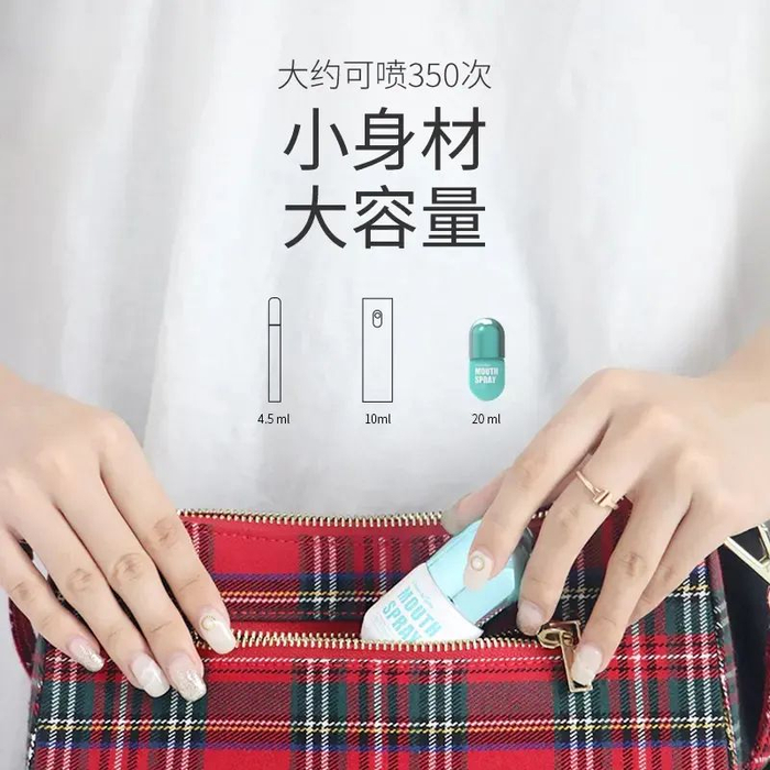小小一瓶有20ML,一瓶能喷上350次左右,外出携带非常方便,比口香糖还方便。