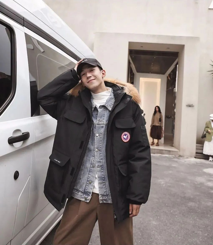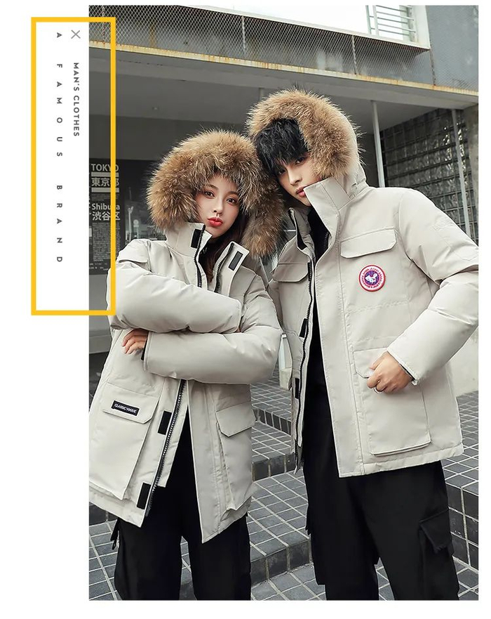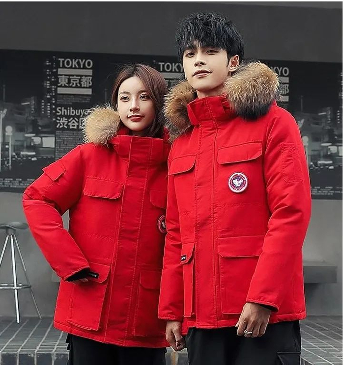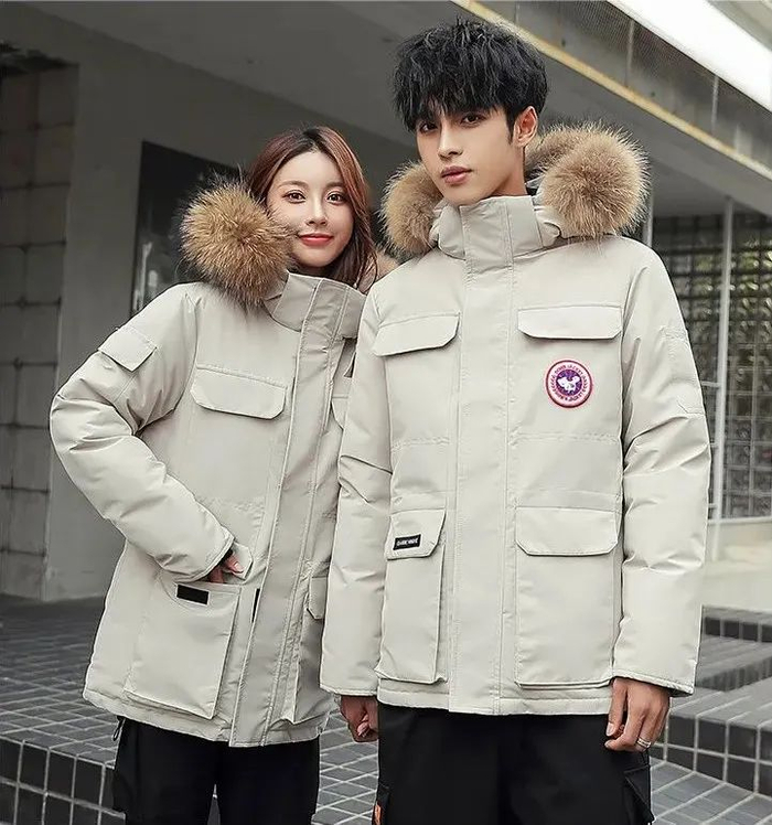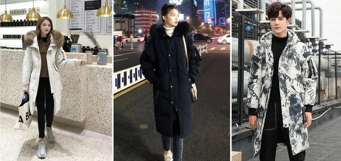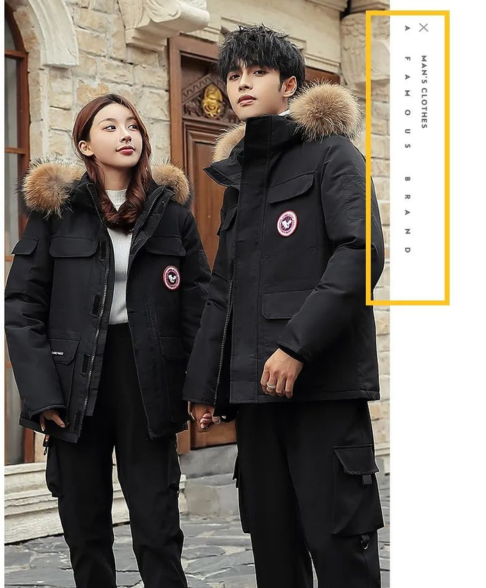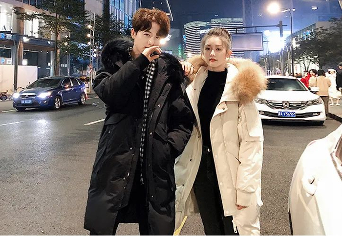 和长款羽绒服的比较,短款从显瘦显高的角度出发,挺阔利落、不臃肿,很适合年轻的情侣穿~