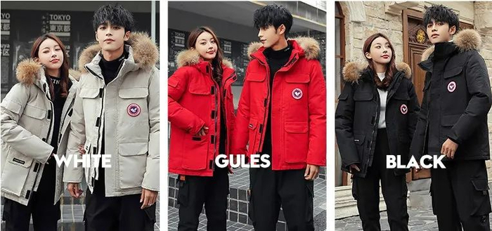 长款羽绒服一共黑、白、迷彩3种颜色,男女都可穿~