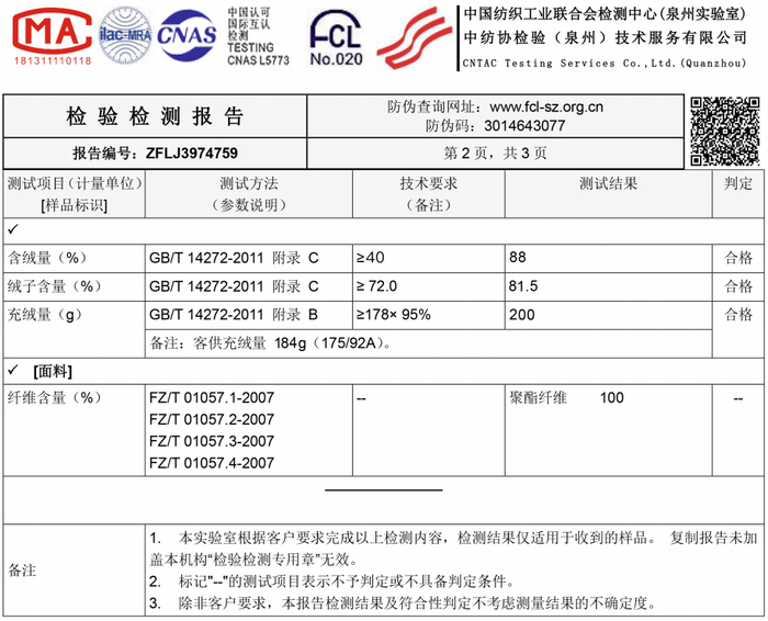 这款hello free羽绒服经专业机构检测,羽绒含量达标,能够抗住东北寒冬。
