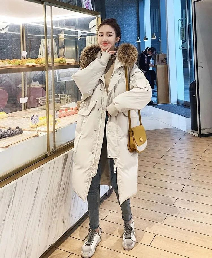 而且长款羽绒服的包容性大,能够遮住粗腰宽胯,露出纤细的小腿,完全就是90斤既视感!