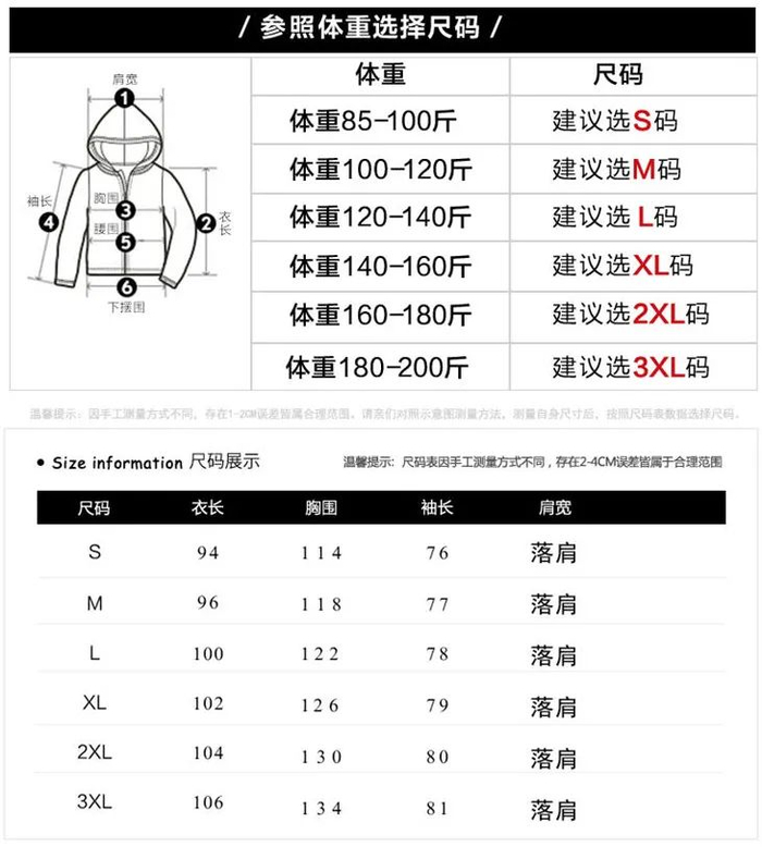 衣服的尺码范围覆盖非常广,85~200斤的小伙伴都能穿。