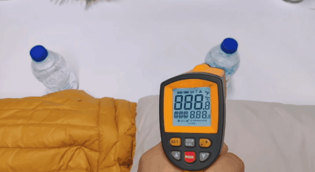 那么具体的保温性能怎么样,实验拿出某品牌同价位的羽绒服进行对比。