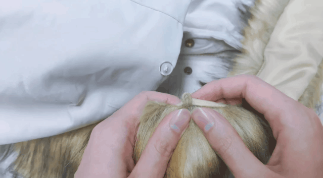 当然大绒领也是可以拆卸,通过纽扣和弹力绳固定,轻轻一套就固定好,个人认为比拉链方便。