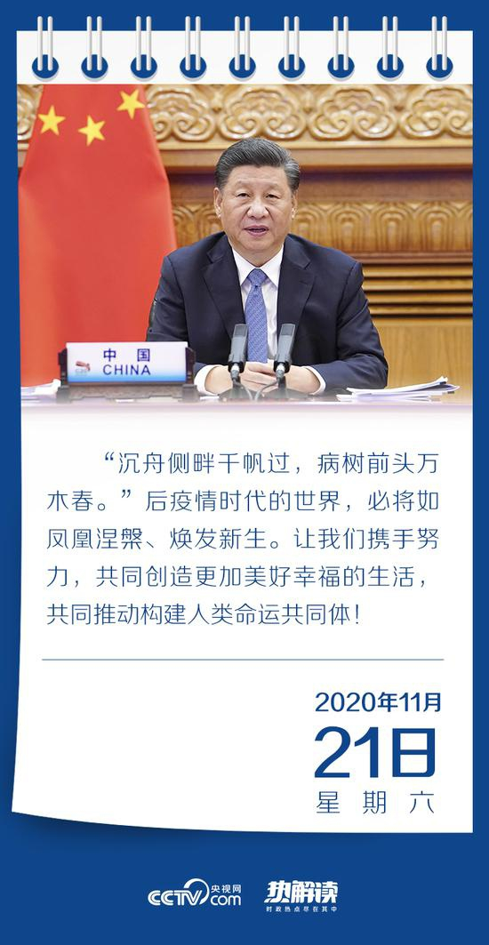 “世界是不可分割的命运共同体”,11月19日,习近平主席以视频方式出席亚太经合组织工商领导人对话会并发表主旨演讲时深刻指出。