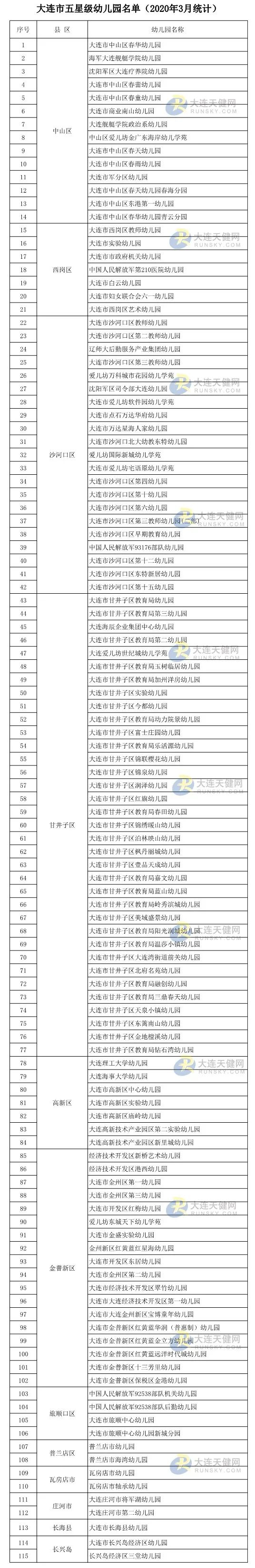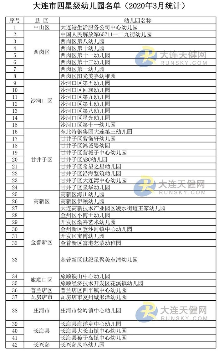 大连市四星级幼儿园名单的通知(大教发〔2020〕49号)